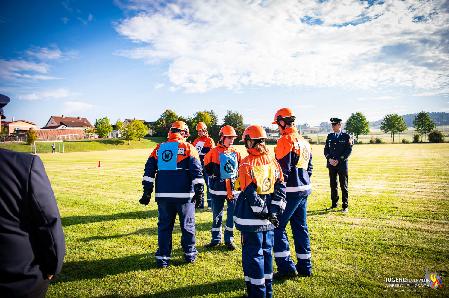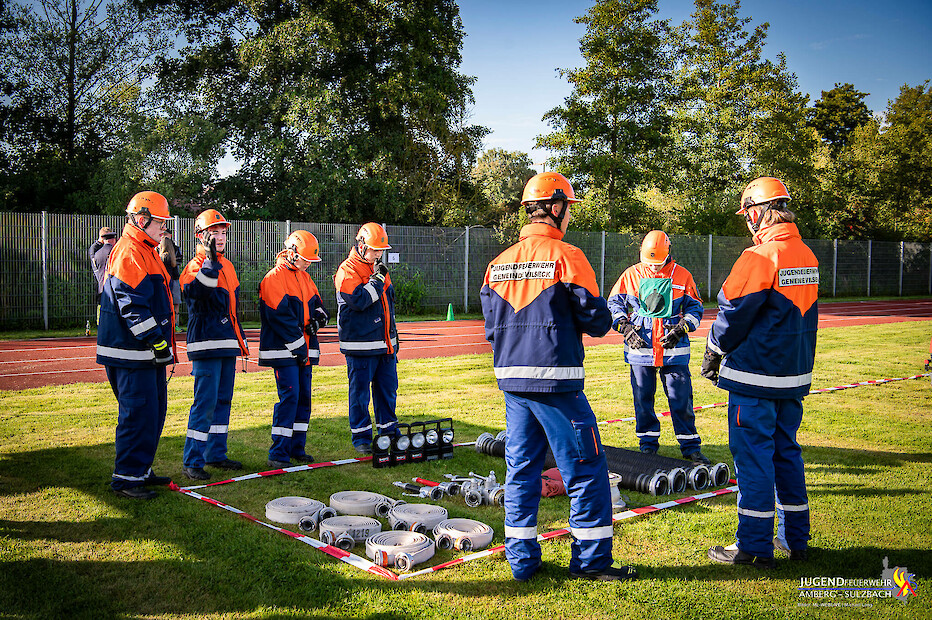 Zuvor standen viele Übungstermine an, in welchen die Teilnehmer vorwiegend durch die Ausbilder Alex, Andreas, Günter, Hannah, Jonas, Markus und Wolfgang intensiv auf die abzulegenden Disziplinen vorbereitet wurden. Als Kategorien werden bei der Abnahme ein Staffellauf, Schnelligkeitsübung, Kugelstoßen, Löschaufbau und die Beantwortung von Fragen erforderlich, welche alle Aspekte des Feuerwehrdienstes abdecken sollen. Im Jahr 2025 war es im Landkreis Amberg-Sulzbach erstmalig möglich, auch als Staffel bei der Abnahme anzutreten. Somit konnte die Gemeindejugendfeuerwehr mit insgesamt 15 Personen antreten.