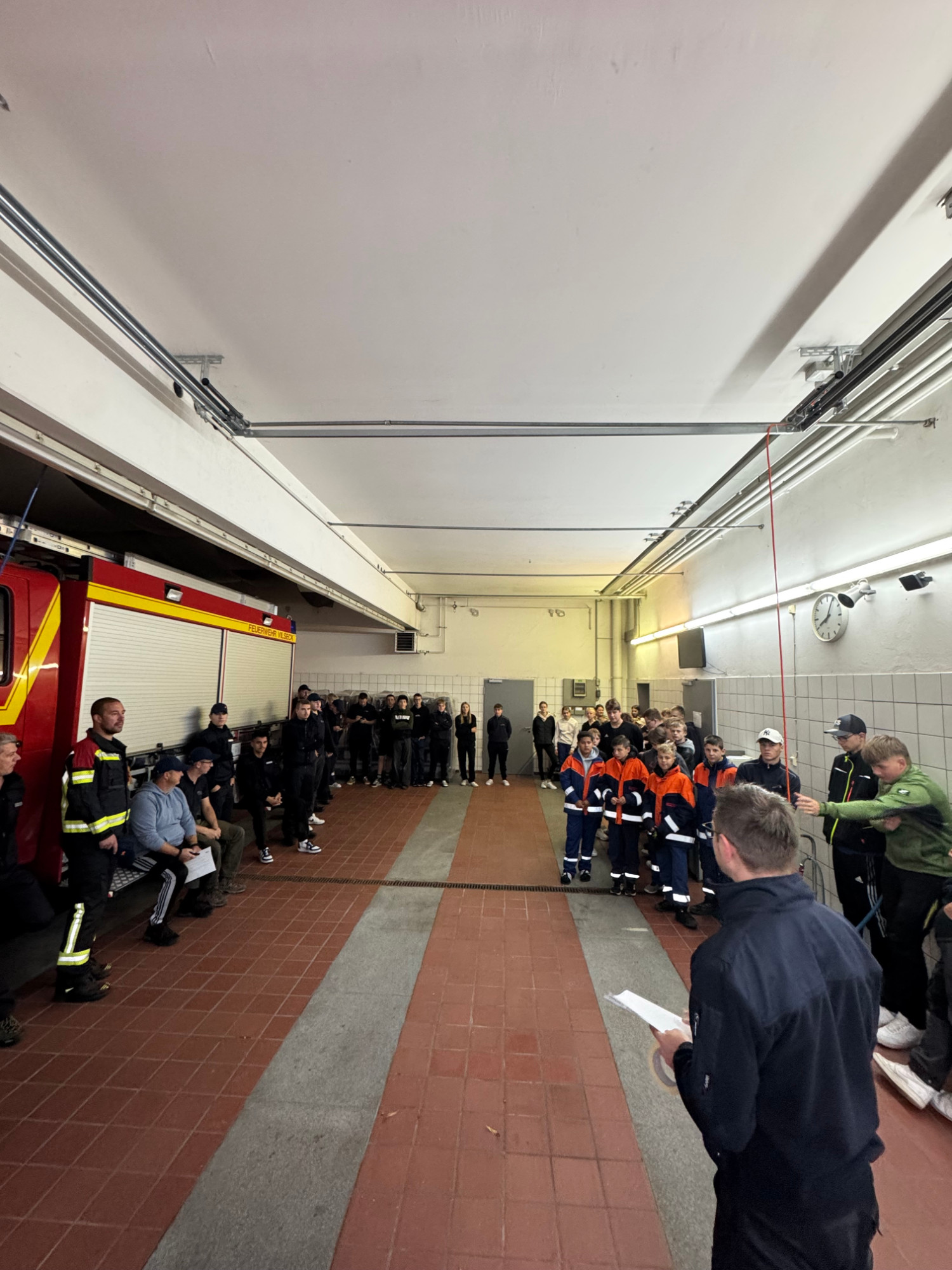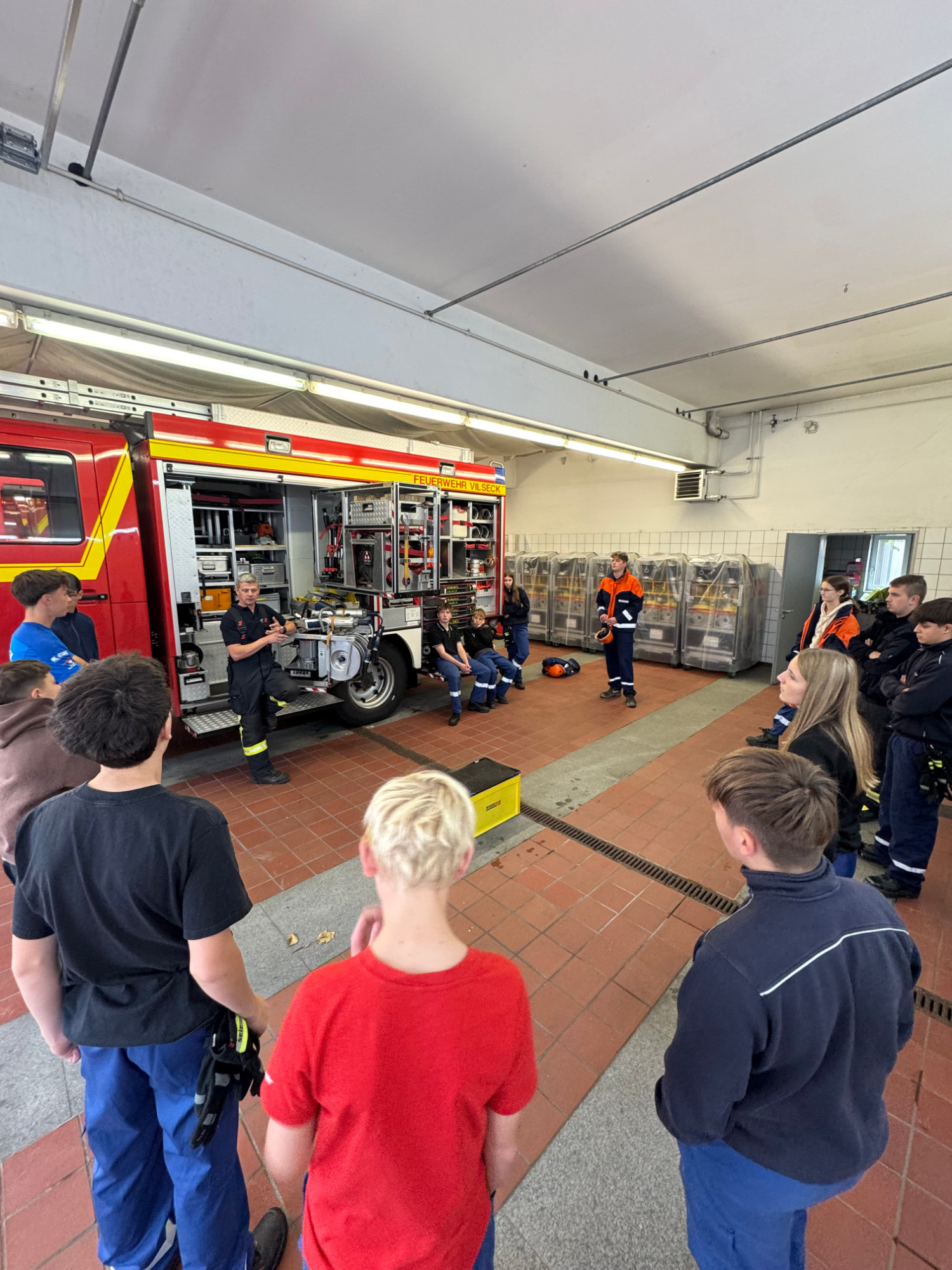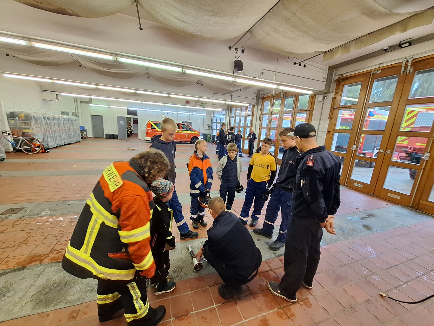 Nach der Fahrzeugübernahme und der Wachbesetzung stand für die Jugendlichen und die Ausbilder die ausführliche Geräteprüfung und Erkundung der Ausrüstung auf dem Dienstplan. Diese Zeit sollte als Grundstein für die Abarbeitung der Einsatzübungen im Tagesverlauf dienen. Die Ausbilder erklärten Gerätschaften und zeigten auf, wo sich bestimmtes Material auf den verschiedenen Fahrzeugen befindet.