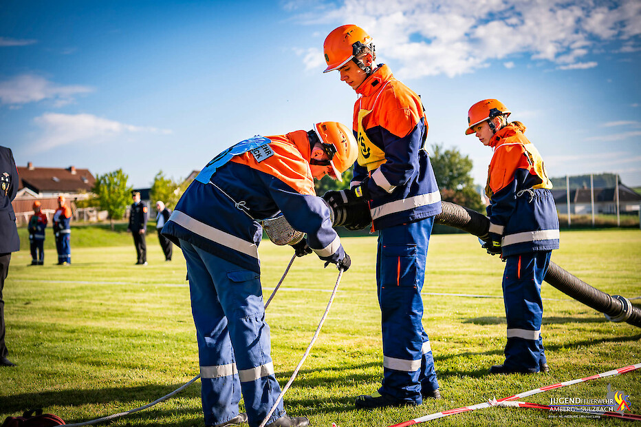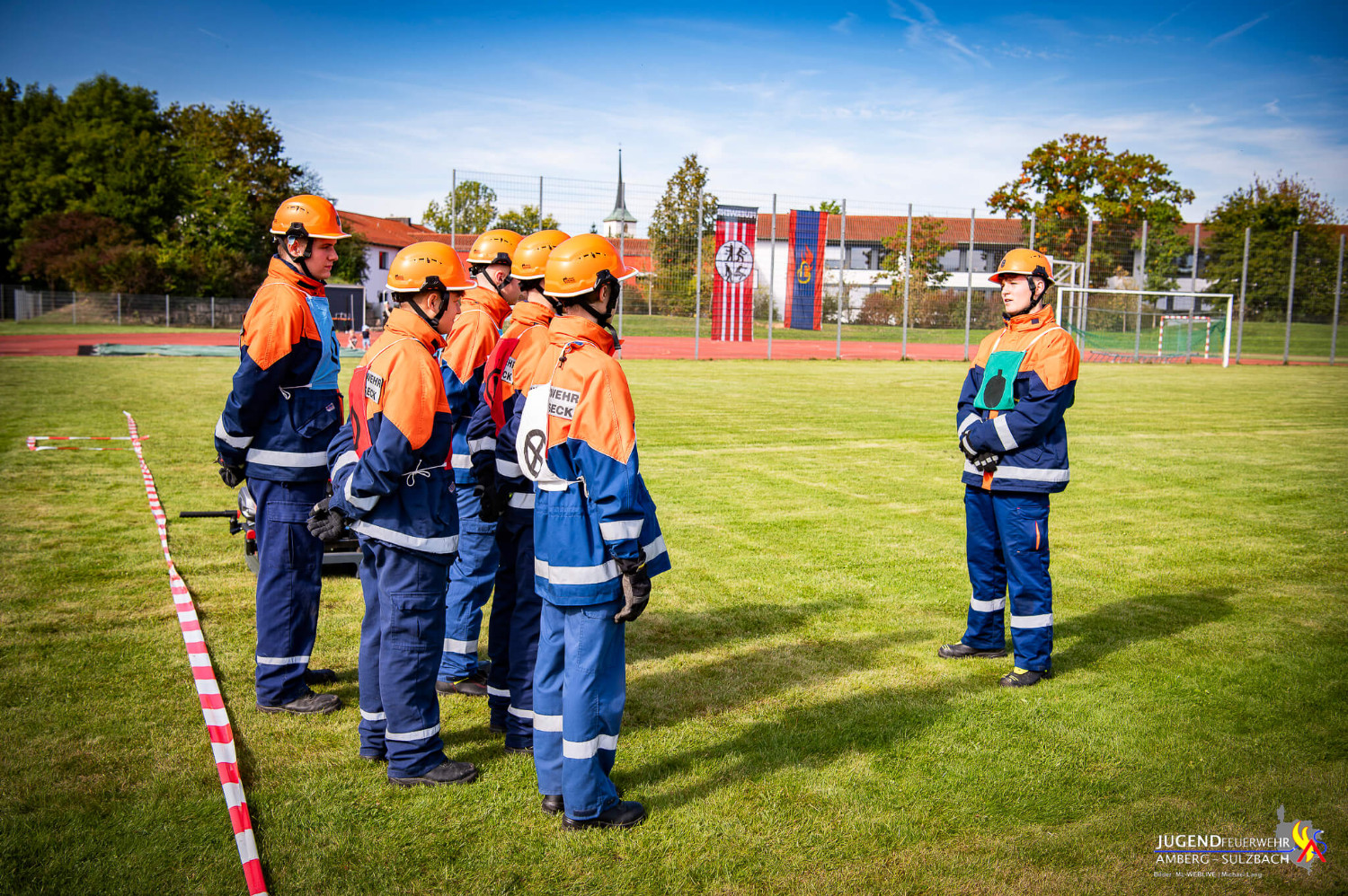 Zuvor standen viele Übungstermine an, in welchen die Teilnehmer vorwiegend durch die Ausbilder Alex, Andreas, Günter, Hannah, Jonas, Markus und Wolfgang intensiv auf die abzulegenden Disziplinen vorbereitet wurden. Als Kategorien werden bei der Abnahme ein Staffellauf, Schnelligkeitsübung, Kugelstoßen, Löschaufbau und die Beantwortung von Fragen erforderlich, welche alle Aspekte des Feuerwehrdienstes abdecken sollen. Im Jahr 2025 war es im Landkreis Amberg-Sulzbach erstmalig möglich, auch als Staffel bei der Abnahme anzutreten. Somit konnte die Gemeindejugendfeuerwehr mit insgesamt 15 Personen antreten.